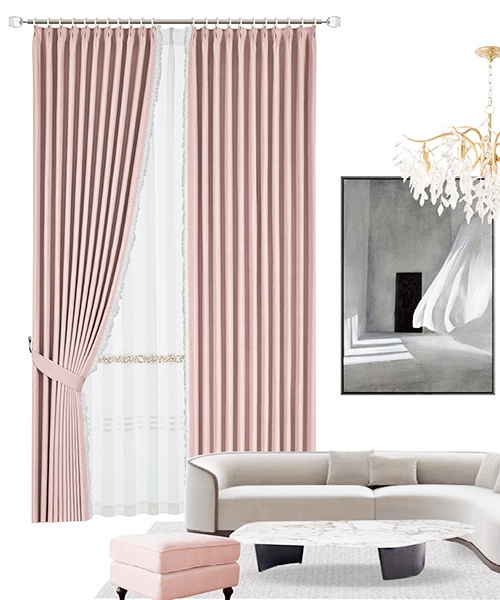 層疊的水波紗與嬌嫩櫻花粉仿佛初入宮廷的少女裙擺,生機(jī)與優(yōu)雅同行,讓空間也明媚起來