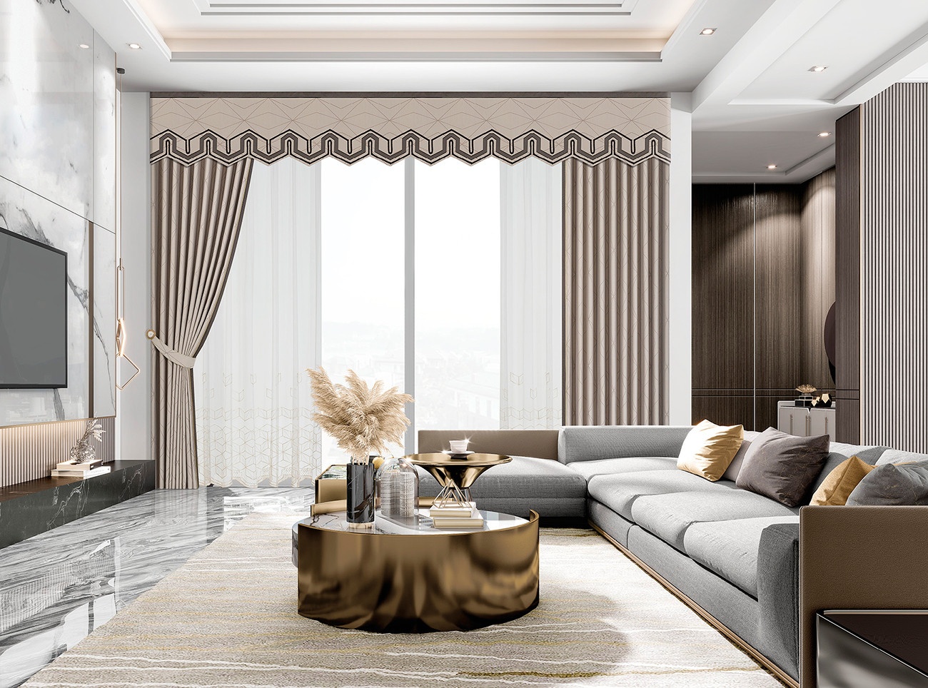 在時(shí)尚簡(jiǎn)約的現(xiàn)代輕奢氛圍中,平靜柔和窗簾展現(xiàn)出典雅的迷人風(fēng)情,幾何線條構(gòu)筑的圖案鋪陳簾身,用無(wú)限細(xì)節(jié)傳遞當(dāng)代奢華的深意,理性質(zhì)感打造時(shí)尚藝術(shù)的生活情調(diào),讓空間洋溢舒適與愜意,家居生活倍感溫馨。